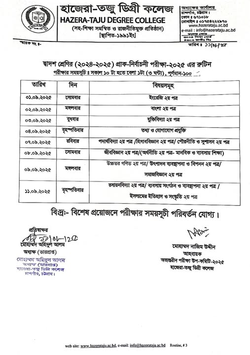 | দ্বাদশ শ্রেণির প্রাক-নির্বাচনী পরীক্ষার রুটিন Active New HSC | 2025-08-11 | Download |