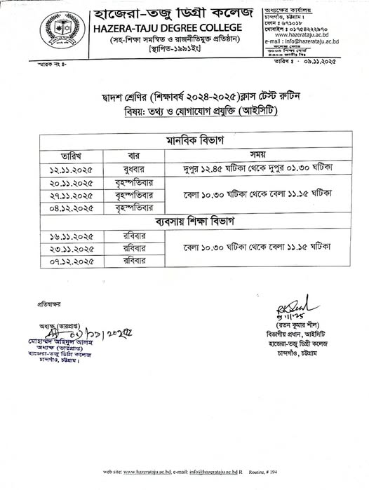 | দ্বাদশ শ্রেণির (শিক্ষাবর্ষ ২০২৪-২০২৫) ক্লাস টেস্ট রুটিন (বিষয়: আইসিটি) Active New HSC | 2025-11-09 | Download |