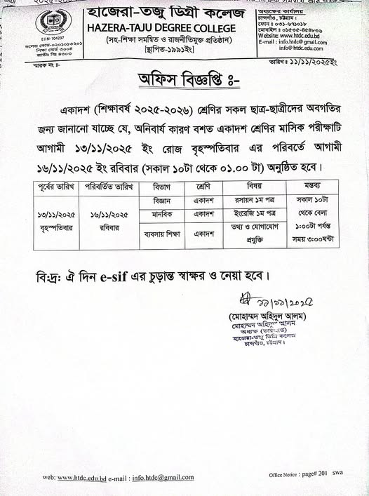| মাসিক পরীক্ষা সংক্রান্ত বিজ্ঞপ্তি Active New HSC | 2025-10-19 | Download |