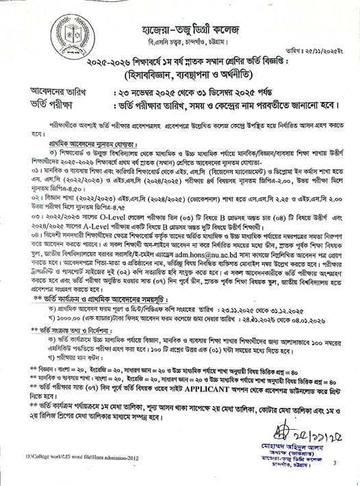 | ২০২৪-২০২৫ শিক্ষাবর্ষে ১ম বর্ষ স্নাতক (সম্মান) শ্রেণির ভর্তি কার্যক্রমে ২য় ও সর্বশেষ রিলিজ স্লিপ সংক্রান্ত বিজ্ঞপ্তি। Active New Honors | 2025-09-29 | Download |