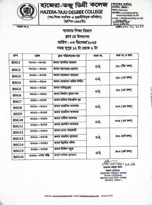 | একাদশ শ্রেণির (শিক্ষাবর্ষ ২০২৫-২০২৬) ক্লাব ডে সংক্রান্ত বিজ্ঞপ্তি (ব্যবসায় শিক্ষা বিভাগ) Active New HSC | 2025-11-30 | Download |