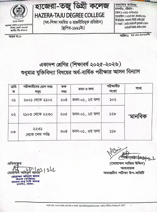 | একাদশ শ্রেণির (২০২৫-২০২৬) অর্ধ-বার্ষিক পরীক্ষা-২০২৬ এর আসন বিন্যাস Active New HSC | 2026-01-25 | Download |